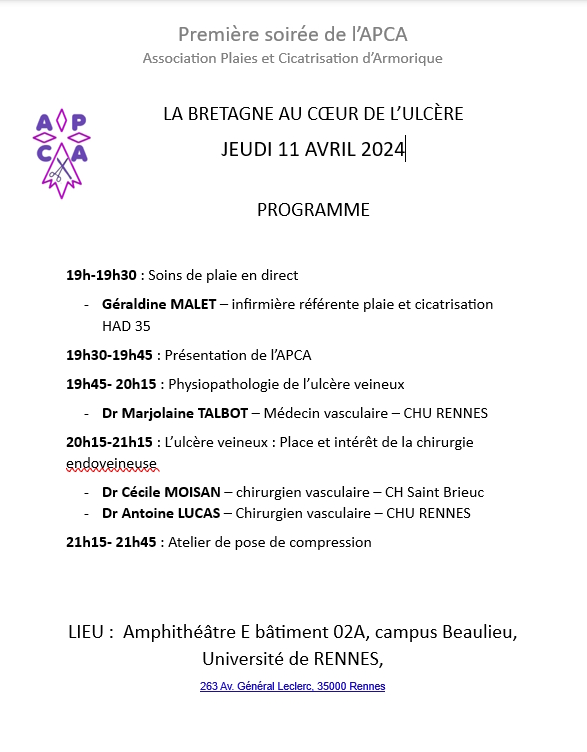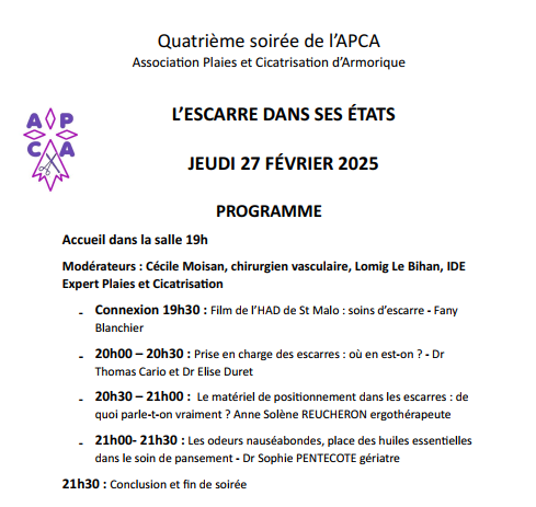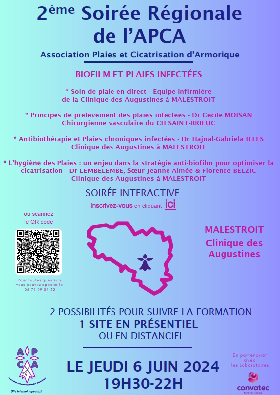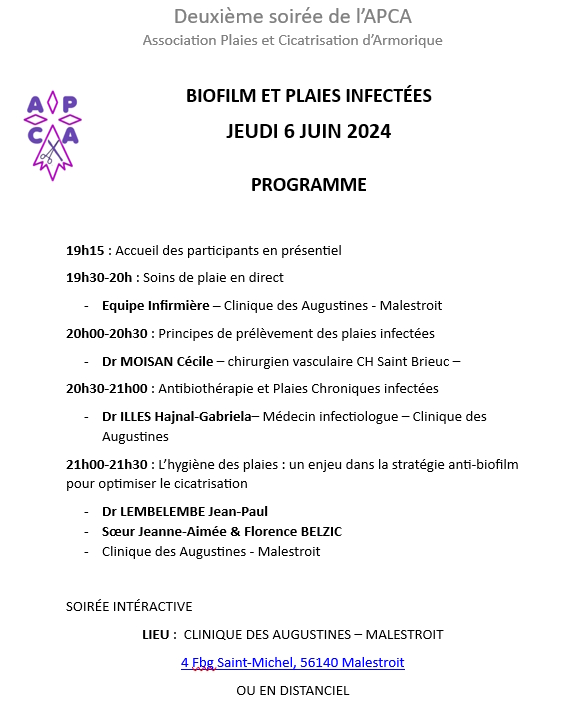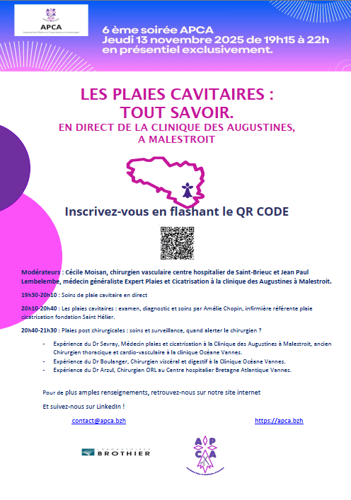 🩺 Rejoignez-nous à la Clinique des Augustines (Malestroit) pour la 6 ième soirée de l’APCA dédiée aux plaies cavitaires !